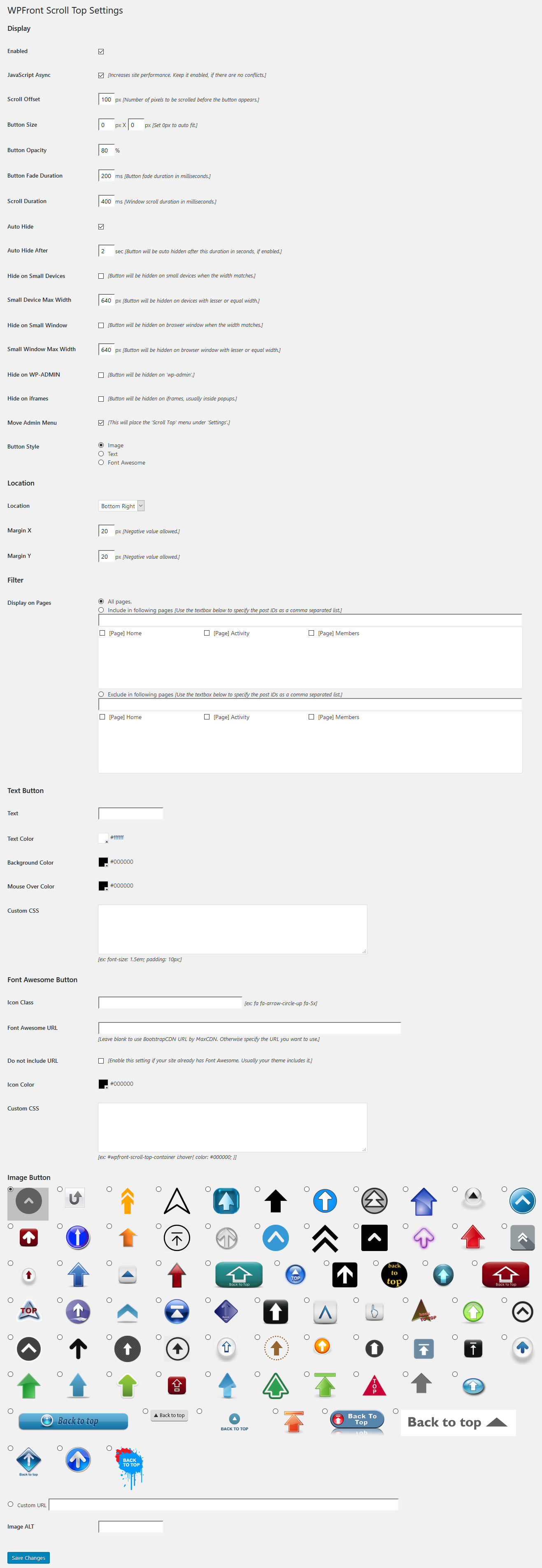 Display on Pages: Allows you to select the pages/posts where the button will be displayed. Use the text box to type the post ID as a comma separated list if the page/post doesn’t appear in the selection window. Use ‘home’ as post ID for home page.